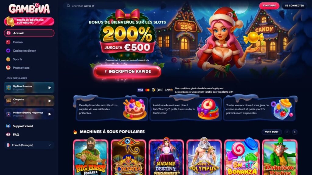 Chez Gambiva, il y a des bonus à foison, même si l’ensemble reste assez ciblé. Tu as le nécessaire : un bonus casino de bienvenue généreux pour un super départ, trois recharges hebdo pour garder la motivation, et un programme VIP pour les habitués. Pas de chichis inutiles, juste de quoi pimenter tes sessions. Allons voir ça de plus près ensemble.