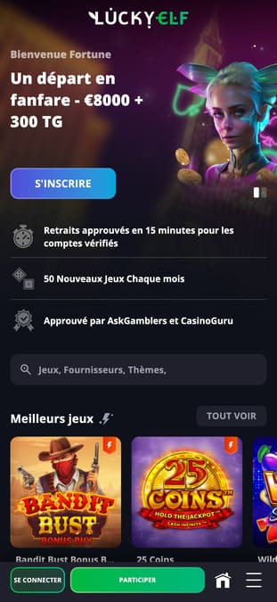Une évidence : Lucky Elf se distingue des autres casinos par son approche des jeux ! Au lieu de menus classiques, tout est mis en avant dès la page d'accueil. Ça donne une navigation fluide et intuitive, même si ça peut sembler moins structuré pour certains. Je te conseille de jeter un œil à l'accueil avant de t'inscrire, pour voir si ça te plaît.