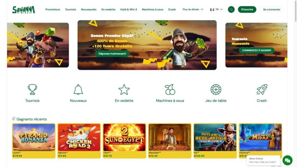 Fournisseurs de jeux de Savanna Wins Casino