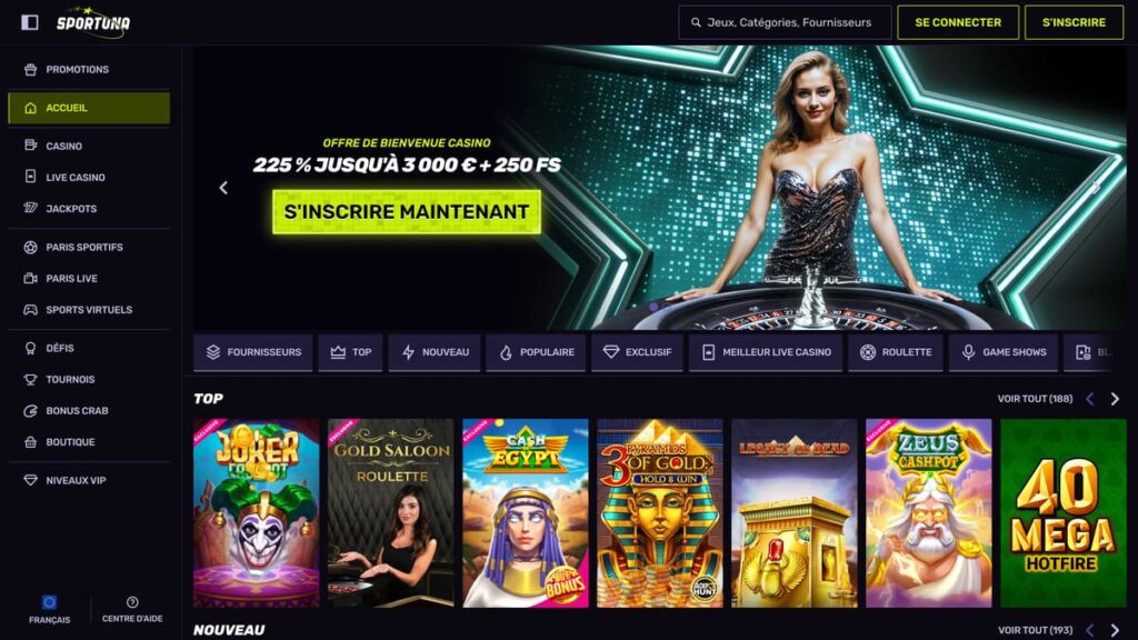 Si tu cherches un endroit complet qui mélange paris sportifs et casino, tu tombes pile poil. Voici mon avis détaillé sur Sportuna pour t’aider à te faire ton idée.